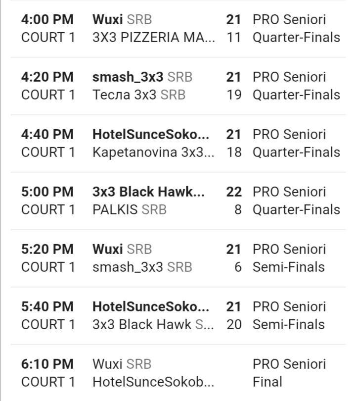 Ево и свих резултата постигнутих на последњем овогодишњем 3×3 квалификационом турниру Првенства Србије: