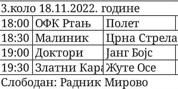 Трећа рунда такмичења на програму је у петак 18. новембра са почетком у 18 сати, а организатори из Фудбалског савеза Бољевца надају се да ће читаво надметање протећи у фер и спортском тону, као што је то био случај и у прва два кола новоформираног такмичења.