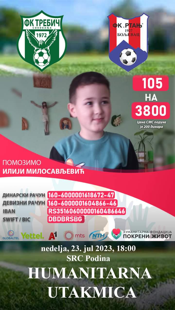 Фудбалери Ртња ремизирали су са екипом Требича резултатом 1:1 у склопу припрема за првенство. Утакмица одиграна на терену СРЦ „Подина“ у Сокобањи у недељу 23. јула имала је хуманитарни карактер, а сва прикупљена средства усмерена су за помоћ дечаку Илији Милосављевићу.