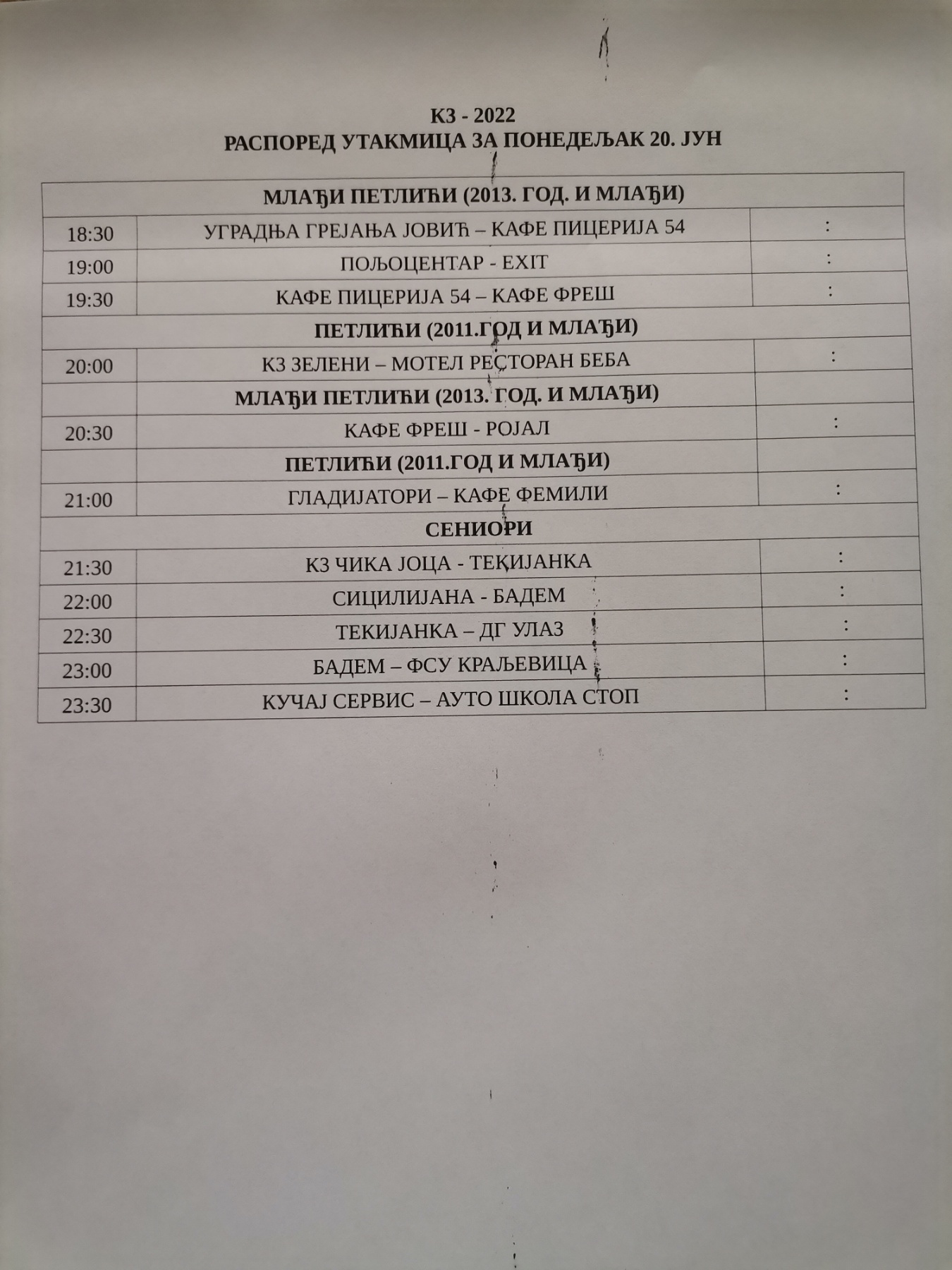 ДРУГА НЕДЕЉА МЕМОРИЈАЛНОГ ТУРНИРА „ЈОЦА МИХАИЛОВИЋ – К3“ У КОТЛУЈЕВЦУ