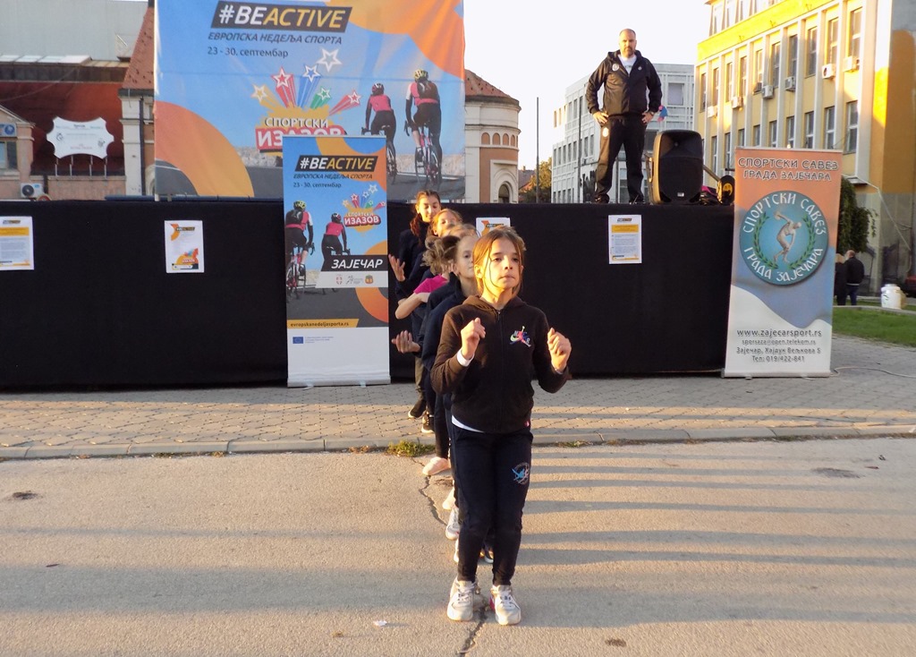 Европска недеља спорта у Зајечару отворена је јавним тренингом и часом за најмлађе Зајечарце на градском скверу. Школица спорта „Тим“ и Гимнастички клуб „Зајечар“ представили су се отвореним тренингом коме су присуствовали бројни чланови ових зајечарских спортских удружења, али и сви заинтересовани који су дошли у пратњи својих родитеља и старатеља и на најлепши могући начин испунили Трг ослобођења.