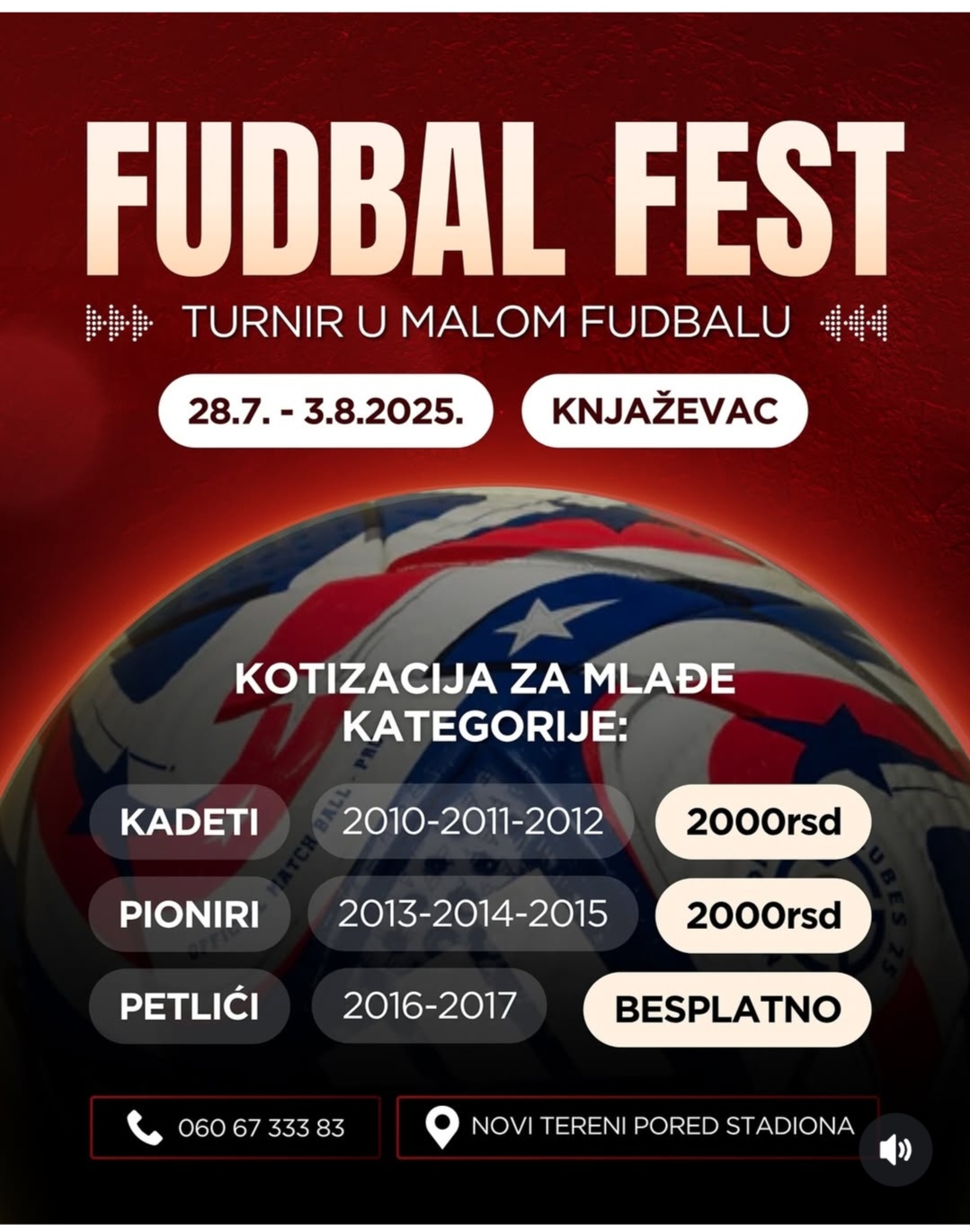 „ФУДБАЛ ФЕСТ“ У КЊАЖЕВЦУ ОД 28. ЈУЛА, СЕДАМ ДАНА СПЕКТАКЛА НА НОВИМ ТЕРЕНИМА КОД ГРАДСКОГ СТАДИОНА