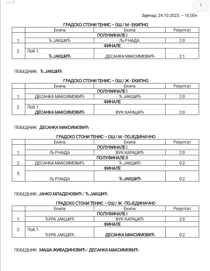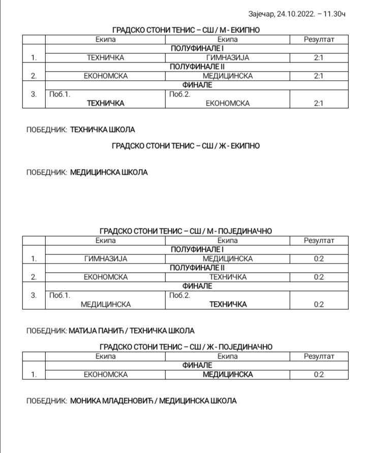 ГРАДСКО ТАКМИЧЕЊЕ У СТОНОМ ТЕНИСУ ОДРЖАНО У ЗАЈЕЧАРУ