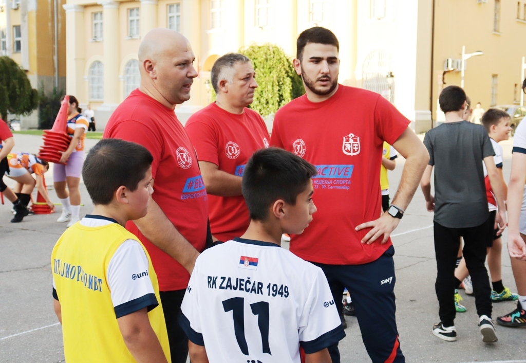 Јавним рукометним тренингом на Тргу ослобођења, настављена је Европска недеља спорта у Зајечару. Део рукометног репертоара приказан је на градском скверу пред очима пролазника, по правом летњем дану на самом почетку јесени.