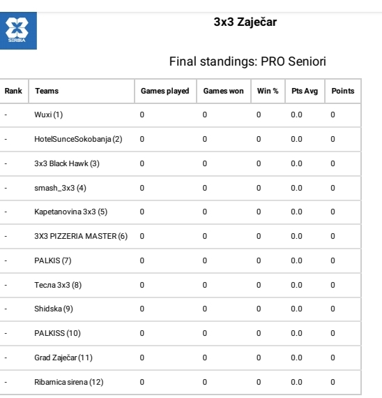 Велико финале у среду 21. септембра у Београду окупиће 16 најквалитетнијих екипа које су свој пласман пронашле преко неког од 30 квалификационих турнира, међу којима ће се наћи и победник зајечарског 3×3 баскет спектакла. Завршница Првенства Србије је на Тргу Републике у центру Београда, а шампион наше земље имаће част да представља нашу земљу на 3×3 „Master World Tour-u“ у Паризу.