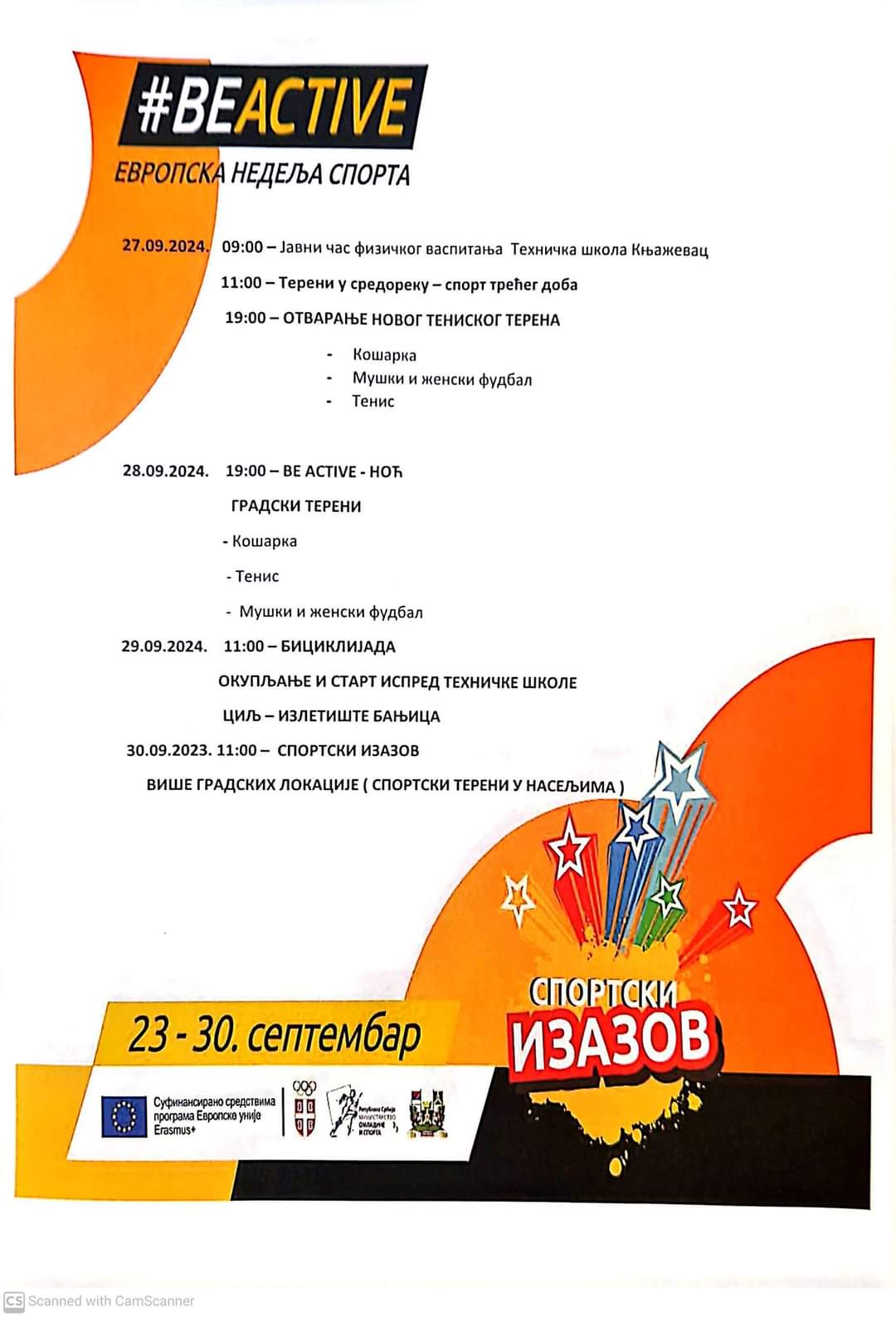 Јавни школски час, вожња кануа, „Бициклијада“ и „Клинцезијада“, „бели спорт“ на новом тениском терену, само су неке од активности које ће бити у фокусу Европске недеље спорта у Књажевцу.