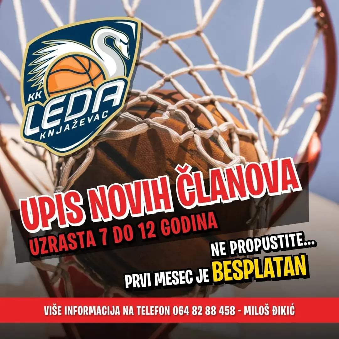 Кошаркашки клуб “Леда“ из Књажевца врши упис нових чланова у школу кошарке. Врата клуба отворена су за све заинтересоване дечаке и девојчице од седам до 14 година, сваког радног дана за време одржавања тренинга у сали Гимназије. Клубом иза кога је сјајна сезона у конкуренцији пионира и млађих пионира, годинама са великим успехом у раду са млађим категоријама руководи тренер Милош Ђикић и сарадници са вишегодишњим искуством.