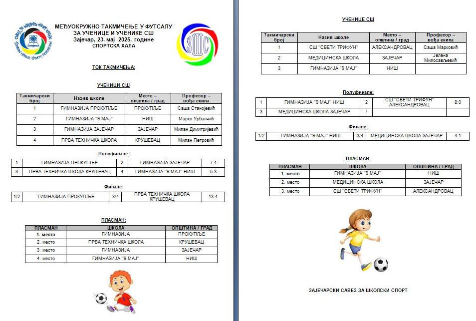 Најпре је у четвртак 22. маја пала одлука о путницима на Државно такмичење у конкуренцији основаца, док је дан касније био резервисан за најбоље футсалере и футсалерке у конкуренцији најуспешнијих средњошколских екипа са територије Зајечарског, Нишавског, Топличког и Расинског округа.
