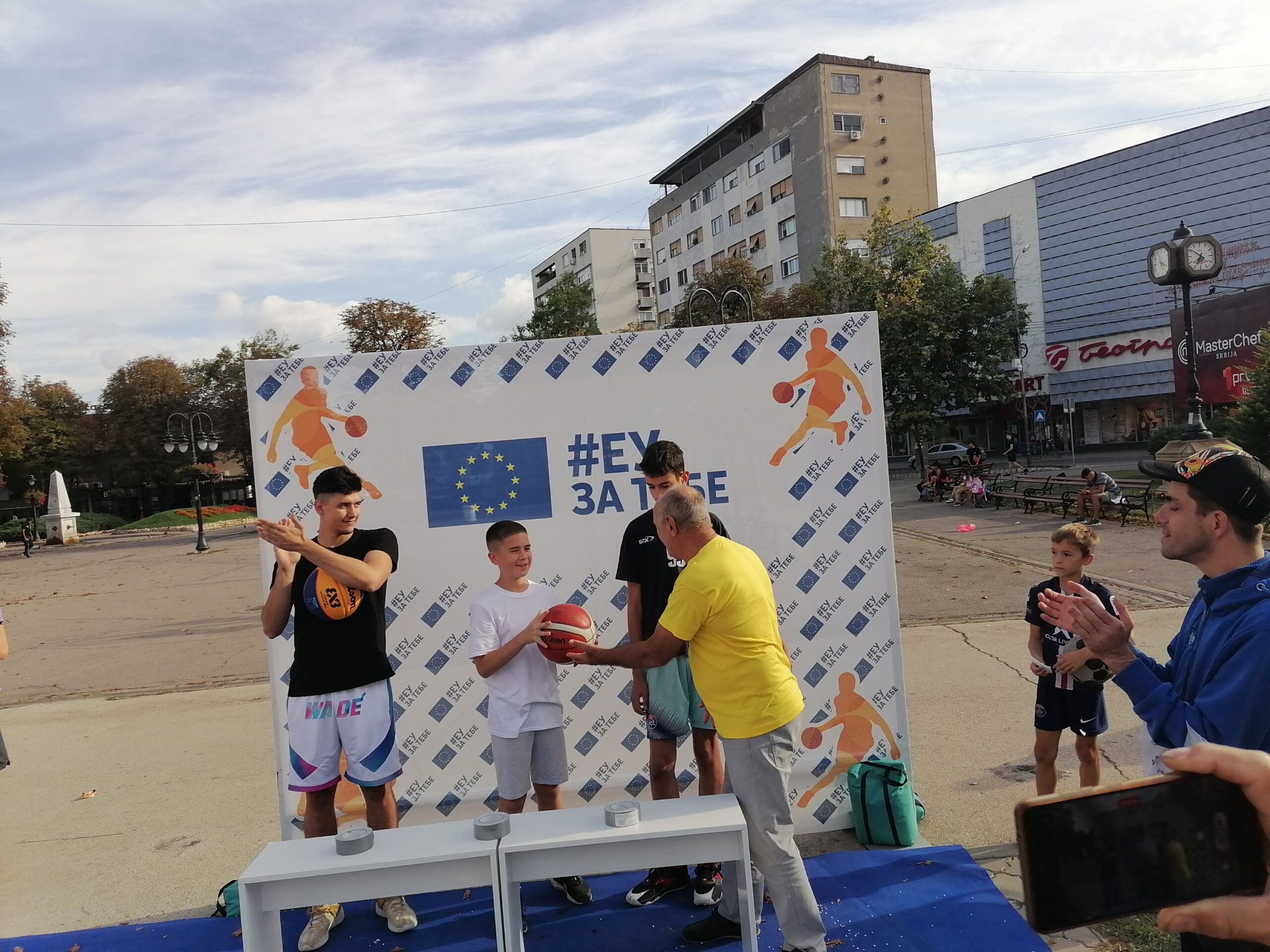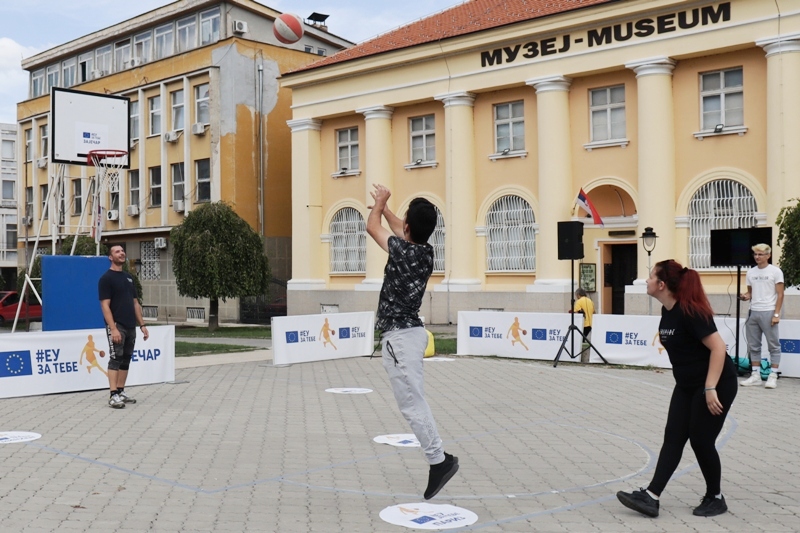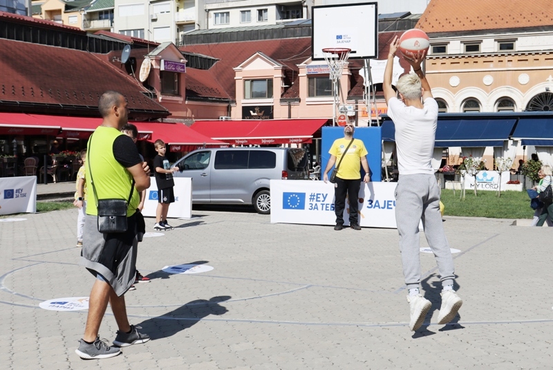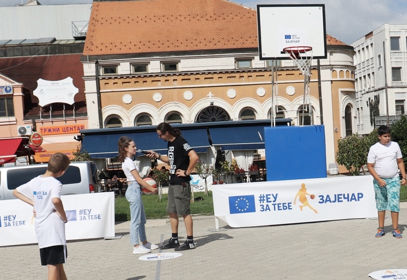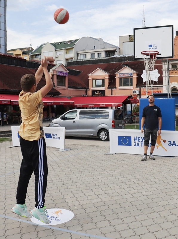 Истог дана у подне, кренуло је и кошаркашко такмичење „Пут око Европе“ у организацији Делегације ЕУ у Србији, где је шутерску срећу на конструкцији постављеној на градском скверу окушало неколико десетина зајечарских школараца. Павле Алексић, Никола Илић и Душан Стошић освојили су прва три места управо тим редоследом на изузетно анимљивом кошаркашком надметању у шутирању на кош са девет позиција које обележавају европске градове.