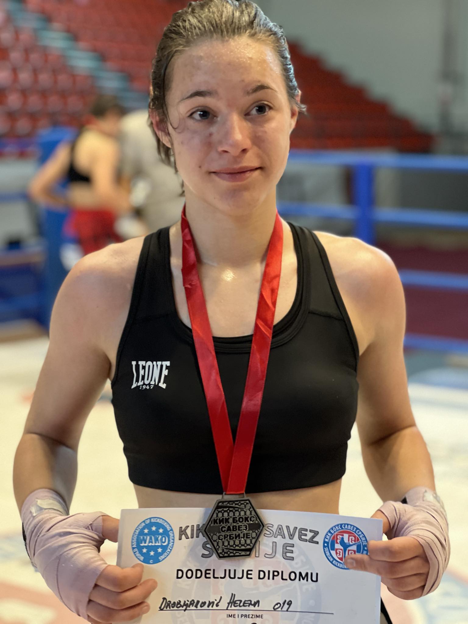Хелена Дробњаковић је титули из маја 2023. године у Руми у дисциплини „low kick“ (лоу кик), додала бронзу у истој дисциплини овог пута у Лазаревцу и нема сумње да је на прави начин ставила тачку на пролећни део сезоне.