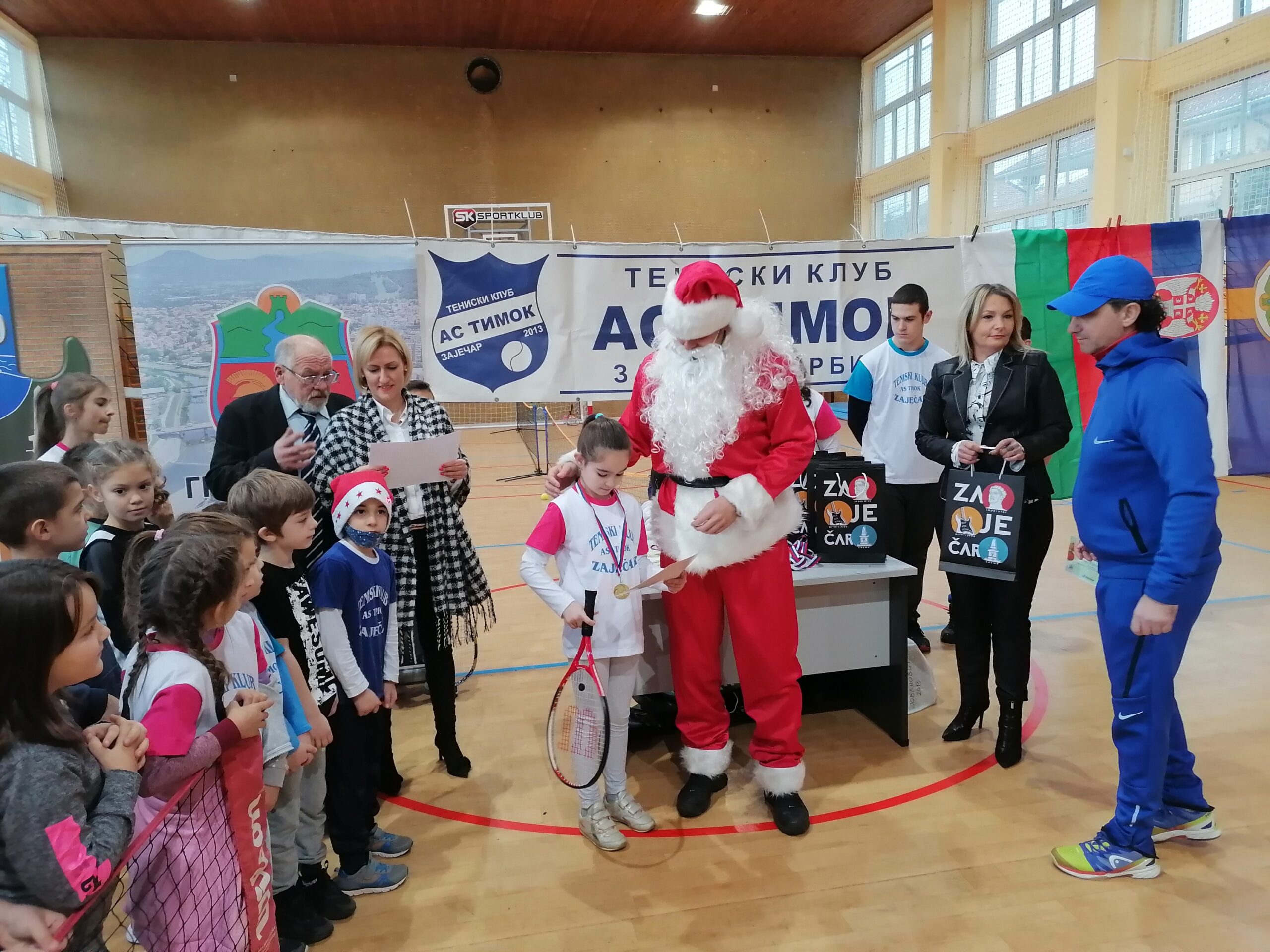 Специјални гост Новогодишњег фестивала тениса био је по добром старом обичају Деда Мраз, који је одушевљеној деци поделио пакетиће, а први човек зајечарског “АС Тимока” Дарио Петковић захвалнице свим пријатељима клуба који су и ове године дали велики допринос развоју и успесима малих тенисера из Зајечара.