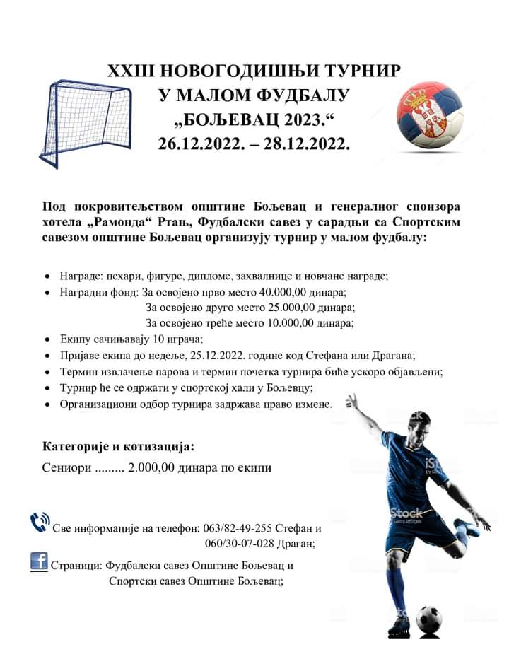 НОВОГОДИШЊИ ТУРНИР У МАЛОМ ФУДБАЛУ У БОЉЕВЦУ ПОЧИЊЕ 26. ДЕЦЕМБРА