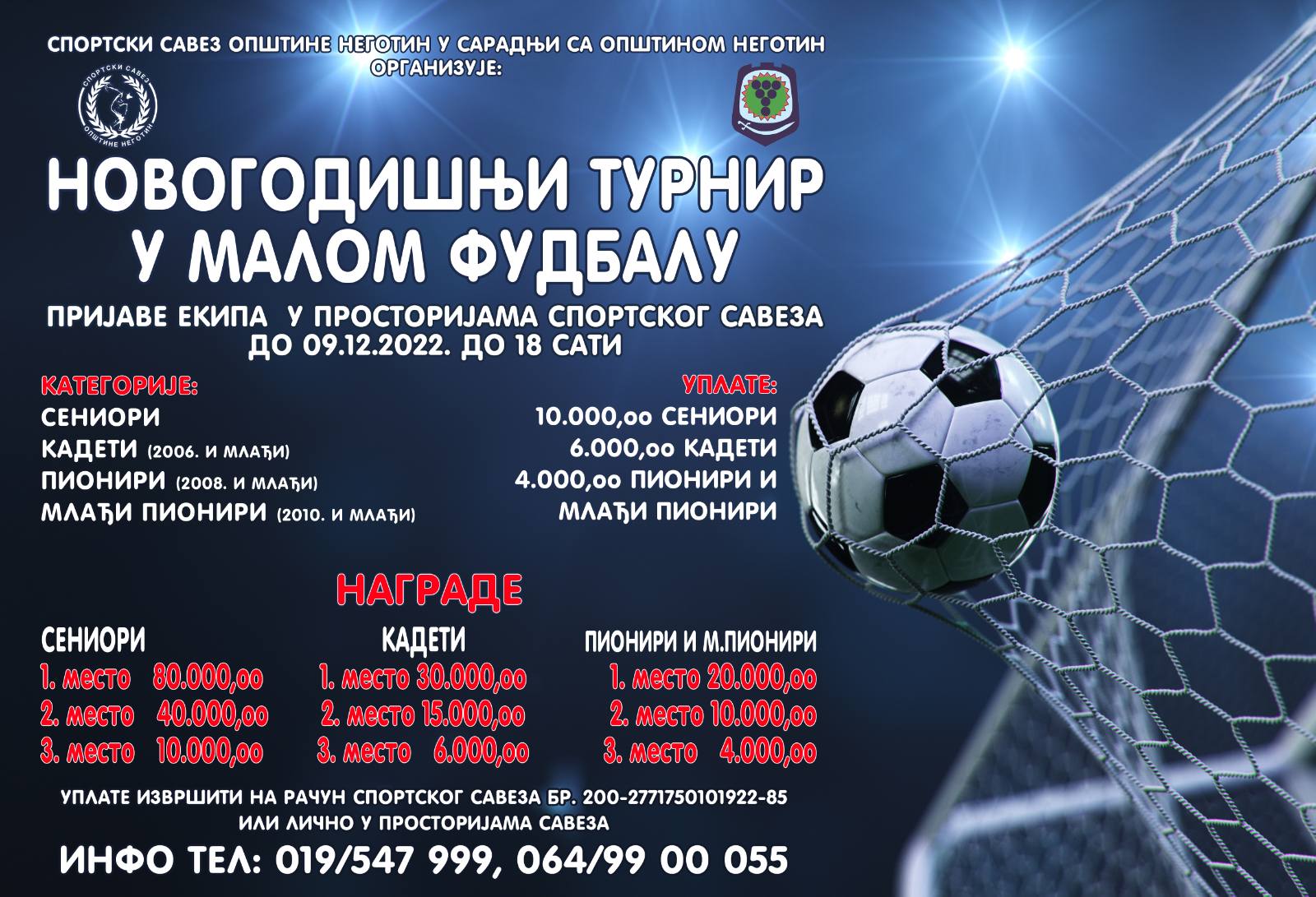 НОВОГОДИШЊИ ТУРНИР У МАЛОМ ФУДБАЛУ У НЕГОТИНУ ПОЧИЊЕ 10. ДЕЦЕМБРА