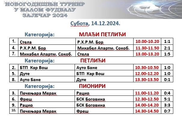 Што се кадета, сениора и ветерана тиче, они ће прве утакмице на Новогодишњем турниру у малом фудбалу “Зајечар 2024” одиграти у понедељак 16. децембра.