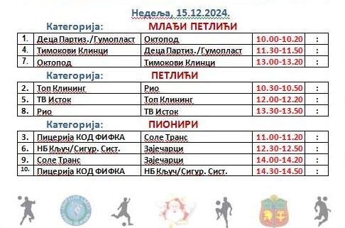 У хали спортова на Краљевици ће се и у недељу 15. децембра надметати екипе у конкуренцији млађих петлића, петлића и пионира, а старт другог дана такмичења заказан је за 10 сати.