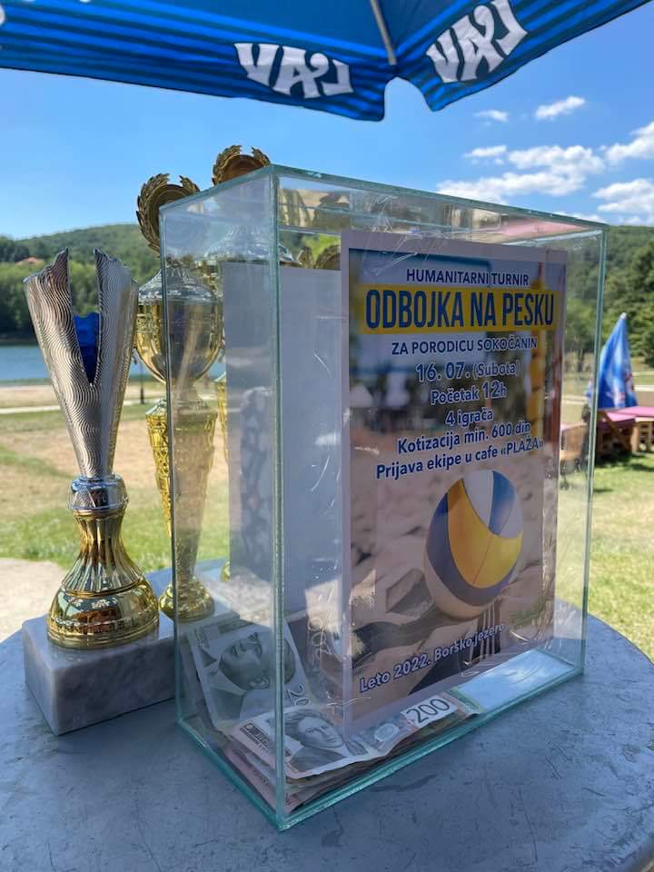 Хуманитарни турнир у одбојци на песку одржан минулог викенда на Борском језеру, оправдао је сва очекивања. Наиме, на традиционалном одбојкашком такмичењу у организацији „Кафе Плажа“ сакупљено је око 1.500 евра, односно тачно 179.405 динара. Целокупан износ биће усмерен на рачун и за помоћ борској породици Сокочанин.