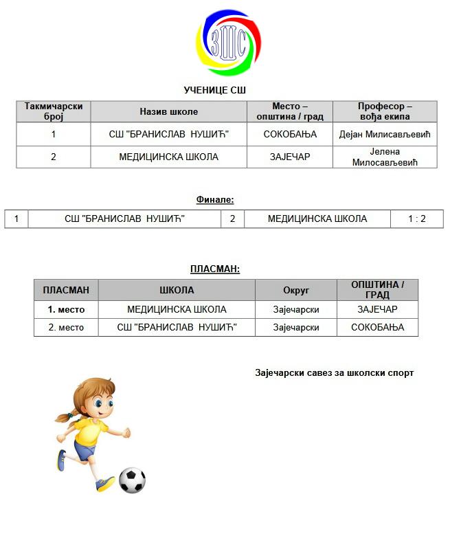 Невероватна количина узбуђења, преокрети и све оне ситнице које фудбал чине посебним, донело је надметање најбољих средњошколских екипа из домаћина Зајечара, Књажевца, Бољевца и Сокобање. Изабраници професора Милана Димитријевића славили су у конкуренцији ученика, док су код ученица тријумфовале ученице професорке Јелене Милосављевић.