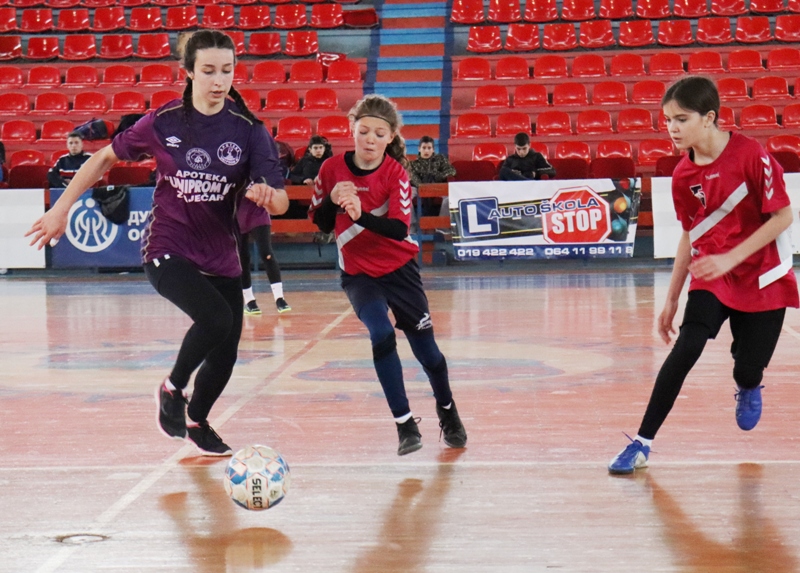Најбољи играчи малог фудбала у конкуренцији ученика и ученица зајечарских основних школа одмерили су снаге у хали спортова на Краљевици у уторак 4. априла. Било је много узбуђења, мајсторских потеза и ефектних голова, а на крају највише разлога за задовољство имају ОШ „Хајдук Вељко“ у мушкој и ОШ „Ђура Јакшић“ у конкуренцији ученица основних школа.