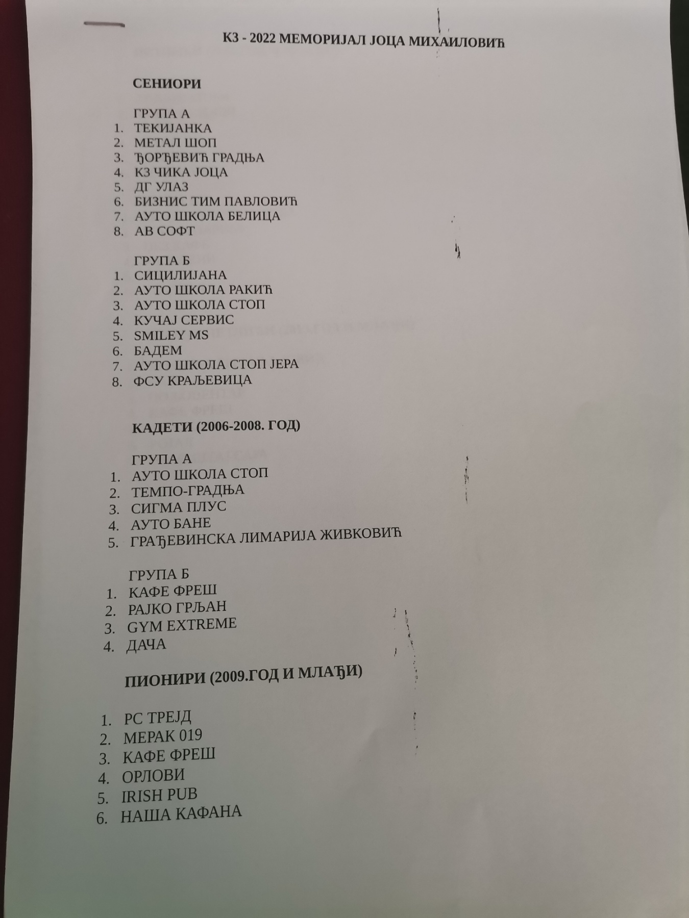 ОТВАРАЊЕ МЕМОРИЈАЛНОГ ТУРНИРА У МАЛОМ ФУДБАЛУ „ЈОЦА МИХАИЛОВИЋ – К3” У КОТЛУЈЕВЦУ, ПОЗНАТ И РАСПОРЕД УТАКМИЦА