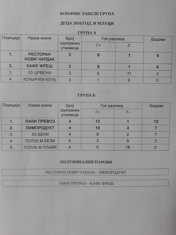 Ево и распореда утакмица за четвртак 25. јун, када су у питању полуфинални мечеви играча рођених 2010. и 2012. године: