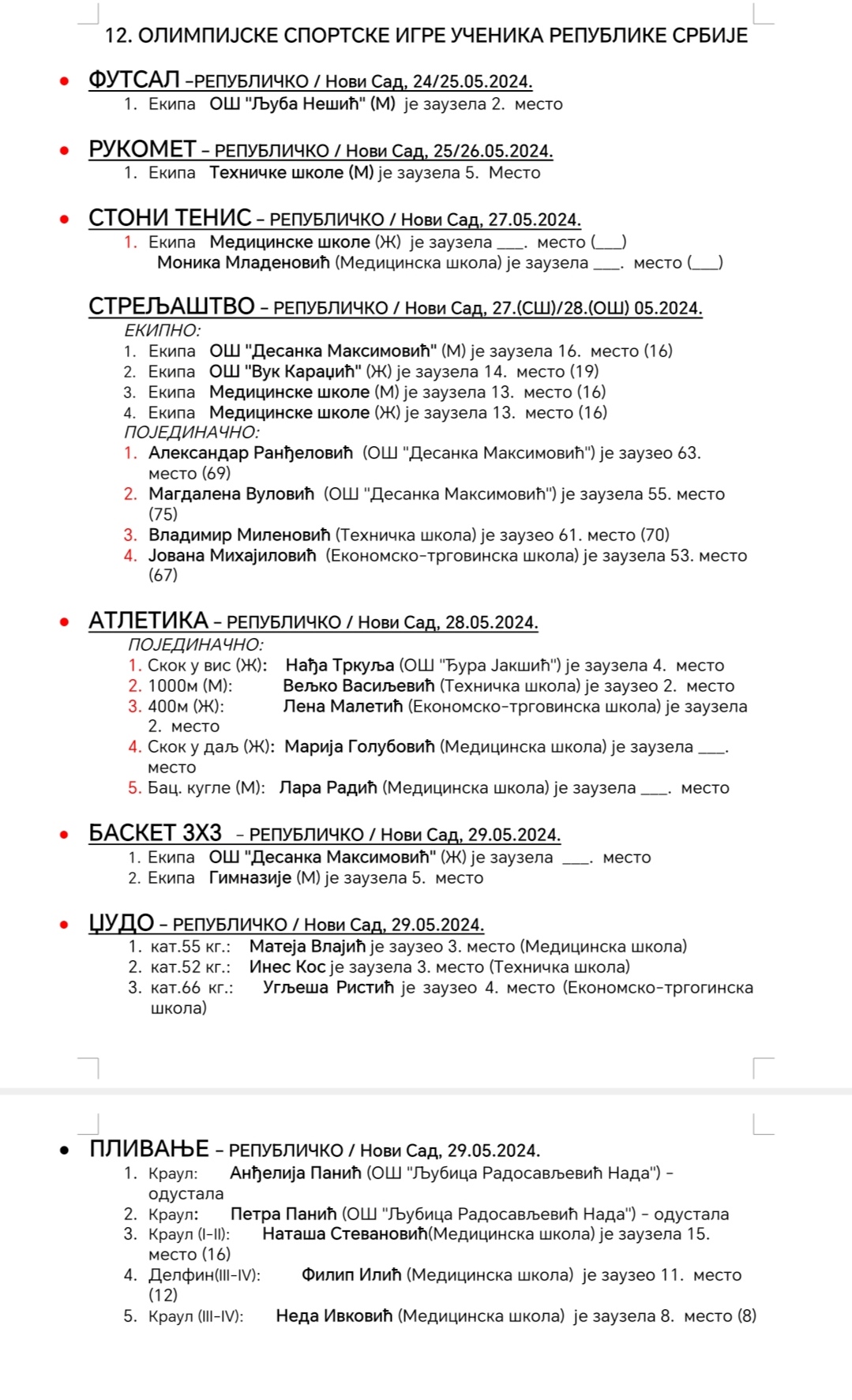 Ево и свих резултата и наступа делегације Зајечара на 12. Олимпијским спортским играма ученика Србије: