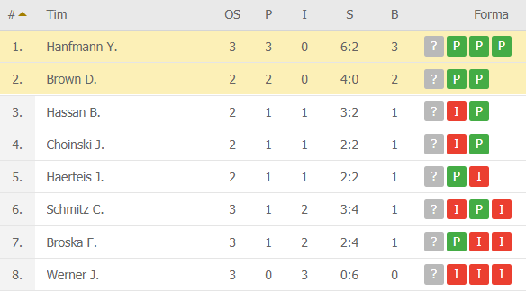 Двојица најбоље рангираних играча су Јаник Ханфман и Дастин Браун. У њиховом двобоју, одиграном у суботу 2. маја, победио је Ханфман, 143. на АТП листи, са 4-3 (7-4), 4-0.