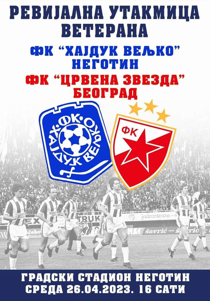 Ветерани домаћег „Хајдук Вељка“ угостиће ветеране Црвена звезде, а истински љубитељи фудбала на делу ће поново моћи да виде легендарне играче великана из Београда. Госте ће у Неготину са почетком од 16 сати предводити Владимир Петровић Пижон, Јован Куле Аћимовић, Милош Шестић, Бошко Ђуровски, Боровница, Милосављевић, у улози „домаћина“ Горан Друлић, али и многи други асови који су проносили славу најтрофејнијег српског клуба.