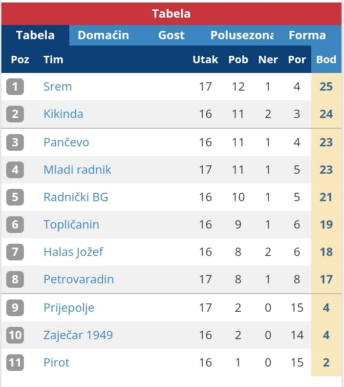 Достојан отпор пружиле су играчице тренера Петровића фаворизованим гошћама, које су након тријумфа у Зајечару преузеле лидерску позицију на табели Супер Б лиге са 25 освојених бодова. Међутим до краја ће се велика борба водити за прва два места која воде у Суперлигу, пошто су се чак четири тима сместила у само два бода разлике. Друго место тренутно држи Кикинда са 24, дакле бодом мање, али и утакмицом мање од Срема, Панчево и Млади Радник су на деоби 3. позиције са по 23 бода. Још увек не треба отписивати ни београдски Раднички са Црвеног Крста, свакако најчувенију српску женску рукометну екипу, која је сакупила 21 бод на 5. месту.