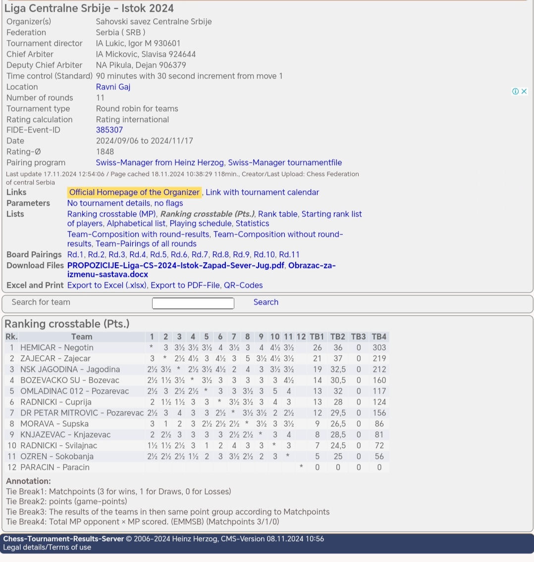 Други део лиге одигран је у крагујевачком крају у периоду од 14. до 17. новембра, а Зајечарци су наступили у следећем саставу:
