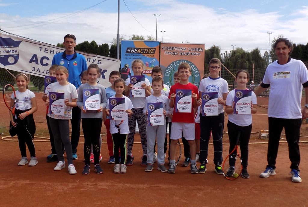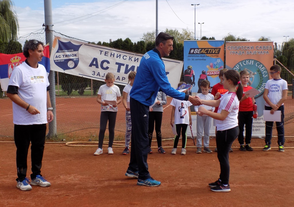 „Глас спорта“ био је наравно на лицу места, а ево и најбољих малих зајечарских тенисера, који су награђени дипломама Спортског савеза града Зајечара, организатора Европске недеље спорта у Зајечару. Дипломе су им уручили професор физичког васпитања Драган Петковић и тренер и председник Тениског клуба „АС Тимок“ Дарио Петковић, иначе двојац који са успехом реализује пројекат тенис у школама већ две године у Основној школи „Ђура Јакшић“ у Зајечару.