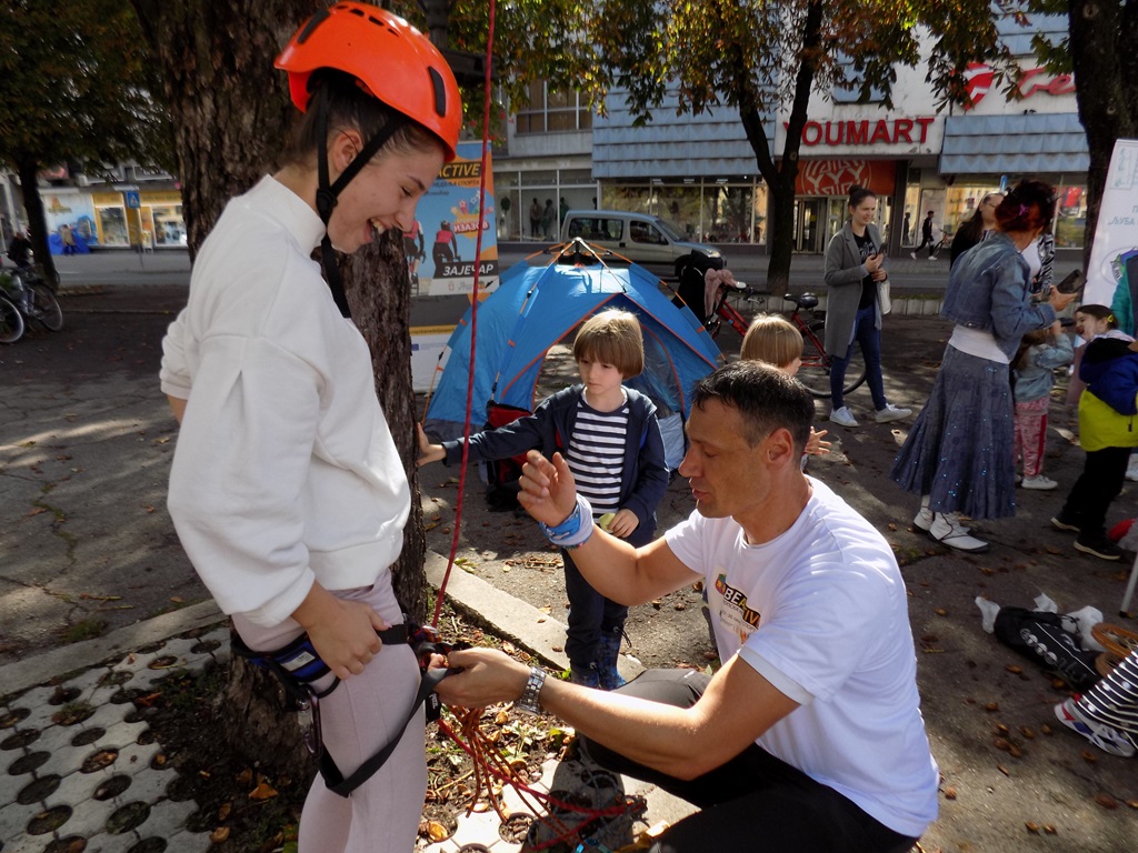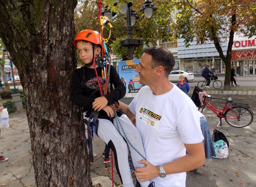 Прави спортски угођај виђен је и нешто касније на Тргу ослобођења, где су јавни тренинг на отвореном одржали представници ПСД „Љуба Нешић“. Осмеси на лицима малишана из Предшколске установе „Ђулићи“ говорили су да је показни тренинг алпинизма био пун погодак на градском скверу. Председник Планинарско-смучарског друштва Милан Јовановић имао је стрпљења за све оне који су се осмелили да се опробају у пењању. Сем деце из зајечарских вртића који су поново били учесници неке од активности Европске недеље спорта у граду на Тимоку, било је ту и оних нешто старијих, како основаца тако и студената, а Спортски савез града Зајечара потрудио се да нико не остане ускраћен за неку од спремљених активација и реквизита.