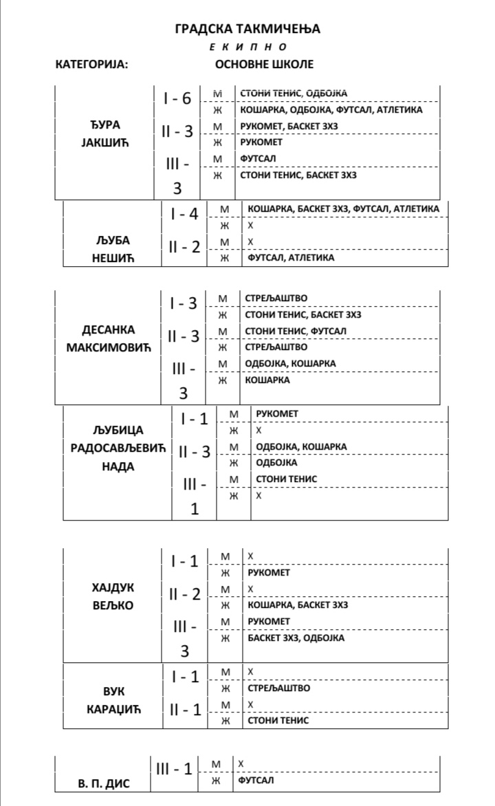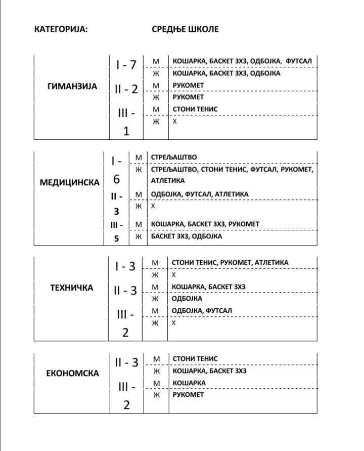 Први део церемоније протекао је у додели диплома екипама зајечарских основних и средњих школа за освојена прва три места на градским такмичењима. Дипломе професорима и ученицима је поделио председник Зајечарског савеза за школски спорт Вук Петровић, а „Глас спорта“ доноси преглед учинка најуспешнијих екипа на првом нивоу такмичења из система Савеза за школски спорт Србије: