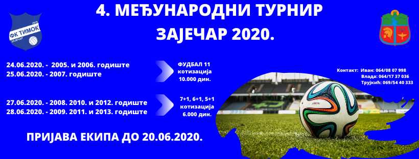 Тако је на Краљевици, на помоћним теренима градског стадиона у уторак 19. маја с тренинзима кренула Школа фудбала Фудбалског клуба „Тимок 1919“. Малишани, како истичу у клубу, нису могли да дочекају нови почетак. Ваља се спремити и за традиционални Међународни турнир „Зајечар 2020“, где се од 24. до 28. јуна очекује велики број екипа из свих крајева Србије, али и иностранства.