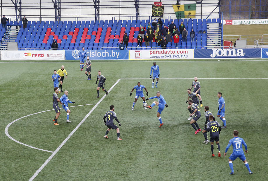 - epa08312066 Players in action during the Belarusian Premier League soccer match between Isloch and Neman Grodno in Minsk, Belarus, 21 March 2020. Belarus didn’t suspend soccer games, as most of European countries due to the coronavirus COVID19 pandemic. Belarus plans to hold all soccer matches, as scheduled, local media reports. EPA-EFE/TATYANA ZENKOVICH