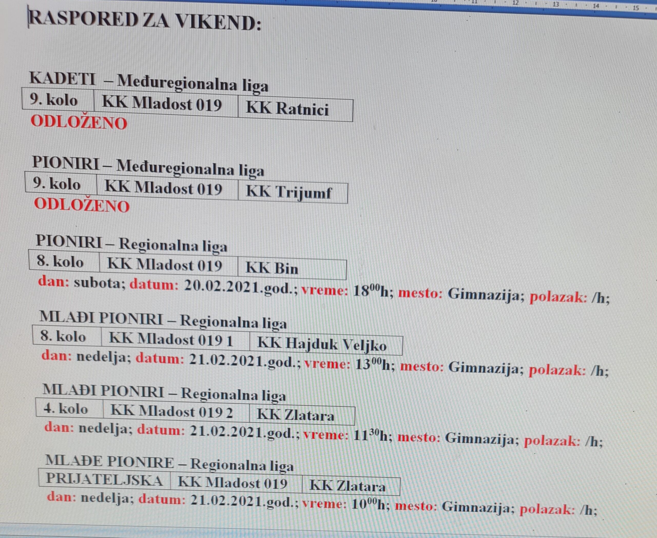 Што се наредног кола тиче, све очи биће кошарашког региона биће упрте у салу Гимназије у Зајечару, где се у суботу 20. фебруара од 18 сати игра градски дерби. Пионири Младости дочекаће вршњаке из Бин-а, у 8. колу Регионалне лиге.
