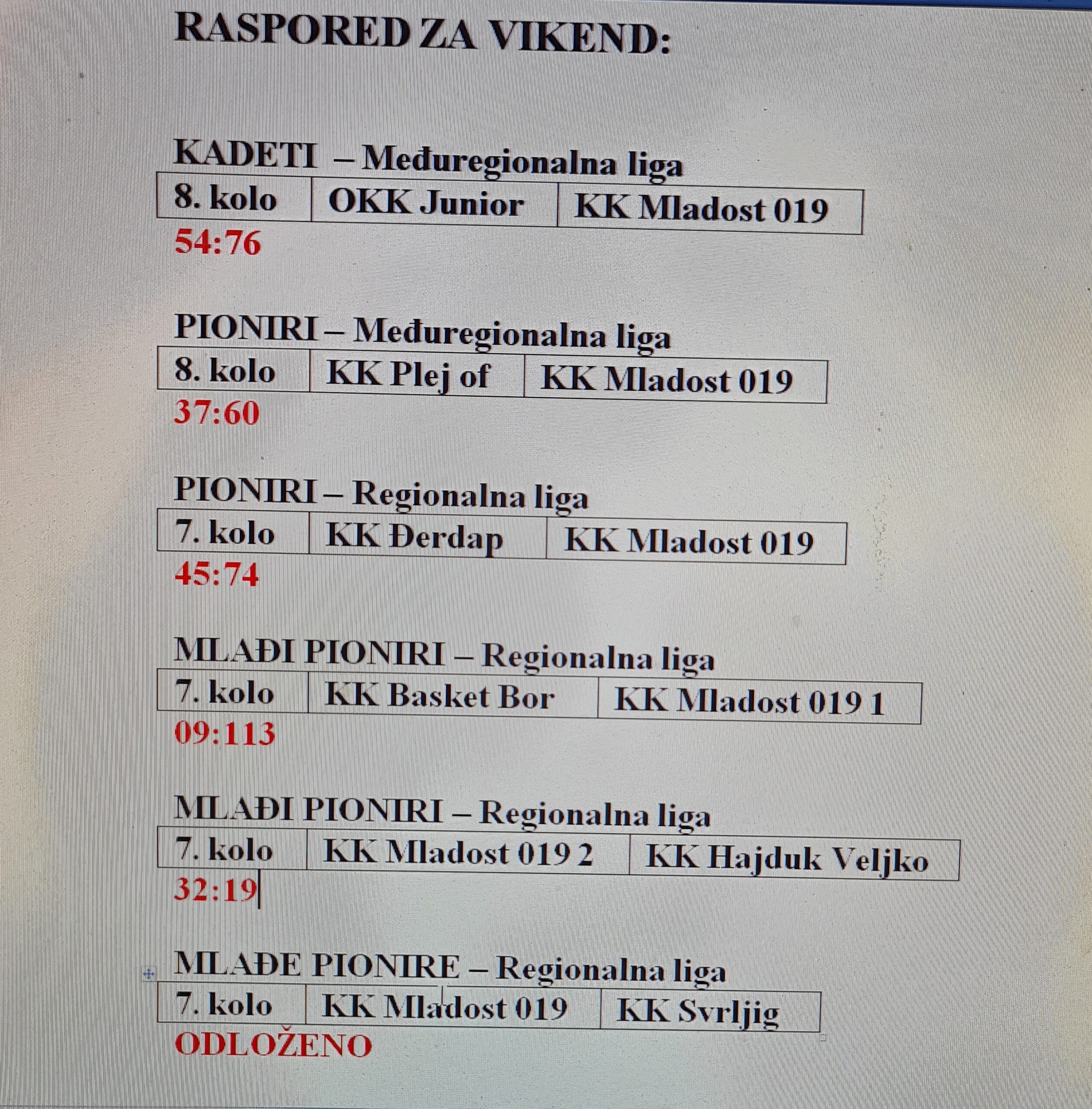 Најубедљивији су били млађи пионири Младости, који су декласирали „Баскет“ у Бору са невероватних 104 разлике, а поред њих тријумфе су уписали и пионири и кадети. Ево и свих резултата: