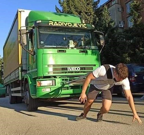 Вуча камиона (од 7 тона); подизање балвана изнад главе (до 150 килограма); ношење кофера (од 220 до 250 килограма); превртање гуме (400 килограма); вуча гуме (до 200 килограма); подизање бучице (једноруког тега) изнад главе; подизање тега (од 220 до 250 килограма) на платформи.