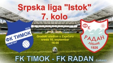 Фудбалери Тимока 1919 имају прилику да наставе победоносни низ на домаћем терену на Краљевици, где ће угостити Радан из Лебана, осокољени освајањем Купа Фудбалског савеза Зајечарског округа и тријумфом у тимочком дербију у Књажевцу. Подсећамо, након шест одиграних кола зајечарски тим има максималних 18 бодова, док су гости из Лебана тренутно на 13. месту табеле од укупно 20 екипа, са 5 освојених бодова и учинком од једне победе, два ремија и три пораза. Ипак, реч је о искусном саставу, који већ дуго година игра у овом рангу такмичења и опуштања код играча тренера Рајчића, не би смело да буде, уколико желе да наставе тријумфални низ на старту сезоне.