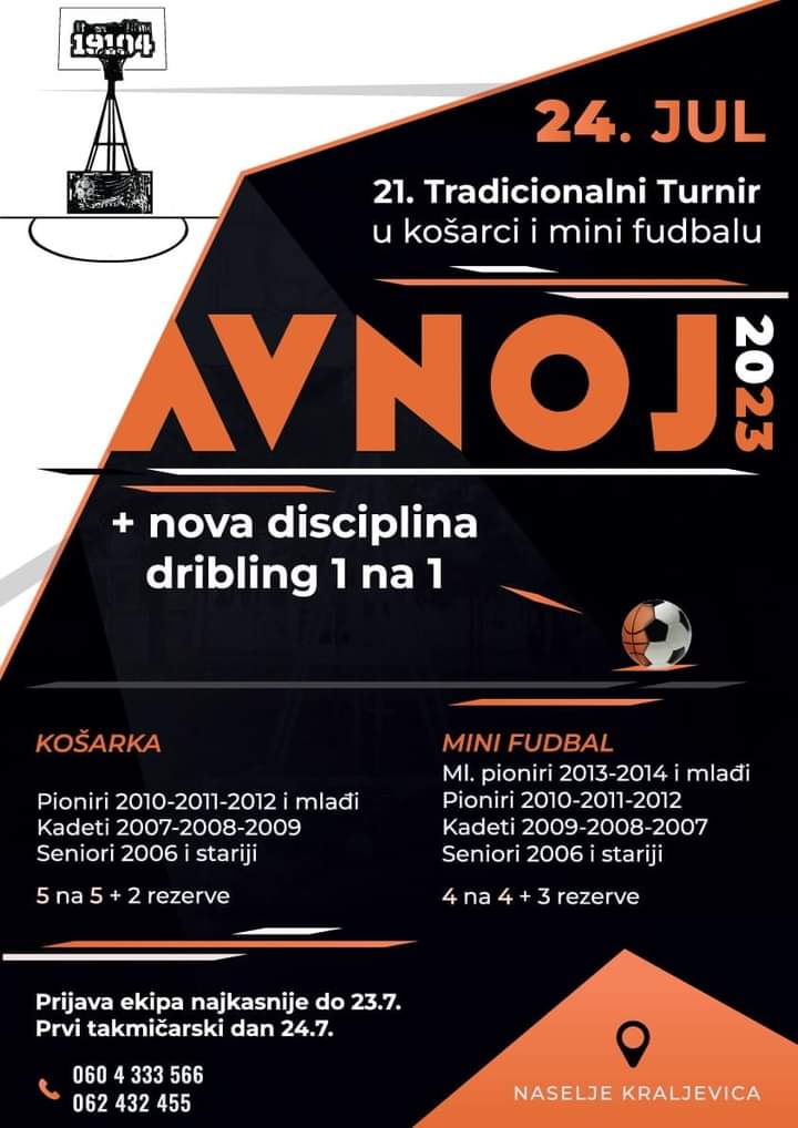 ТРАДИЦИОНАЛНИ 21. ТУРНИР У КОШАРЦИ И МИНИ ФУДБАЛУ „АВНОЈ 2023“ ОД ПОНЕДЕЉКА 24. ЈУЛА У ЗАЈЕЧАРУ