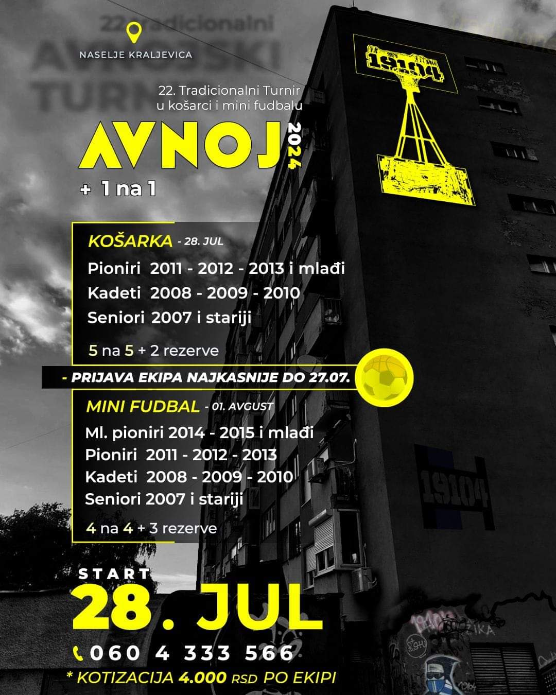 ТРАДИЦИОНАЛНИ 22. ТУРНИР У КОШАРЦИ И МИНИ ФУДБАЛУ „АВНОЈ 2024“ ОД НЕДЕЉЕ 28. ЈУЛА У ЗАЈЕЧАРУ