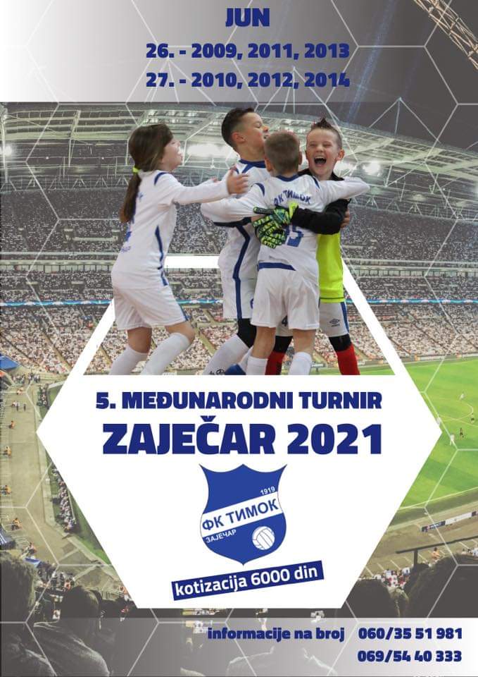 Организатор 5. Међународног фудбалског турнира „Зајечар 2021“ је Фудбалски клуб „Тимок 1919“ уз покровитељство града Зајечара. Првог дана на програму ће бити утакмице малих фудбалера рођених  2009.,2011. и 2013. године, док ће другог дана своје мечеве играти генерације 2010., 2012. и 2014.