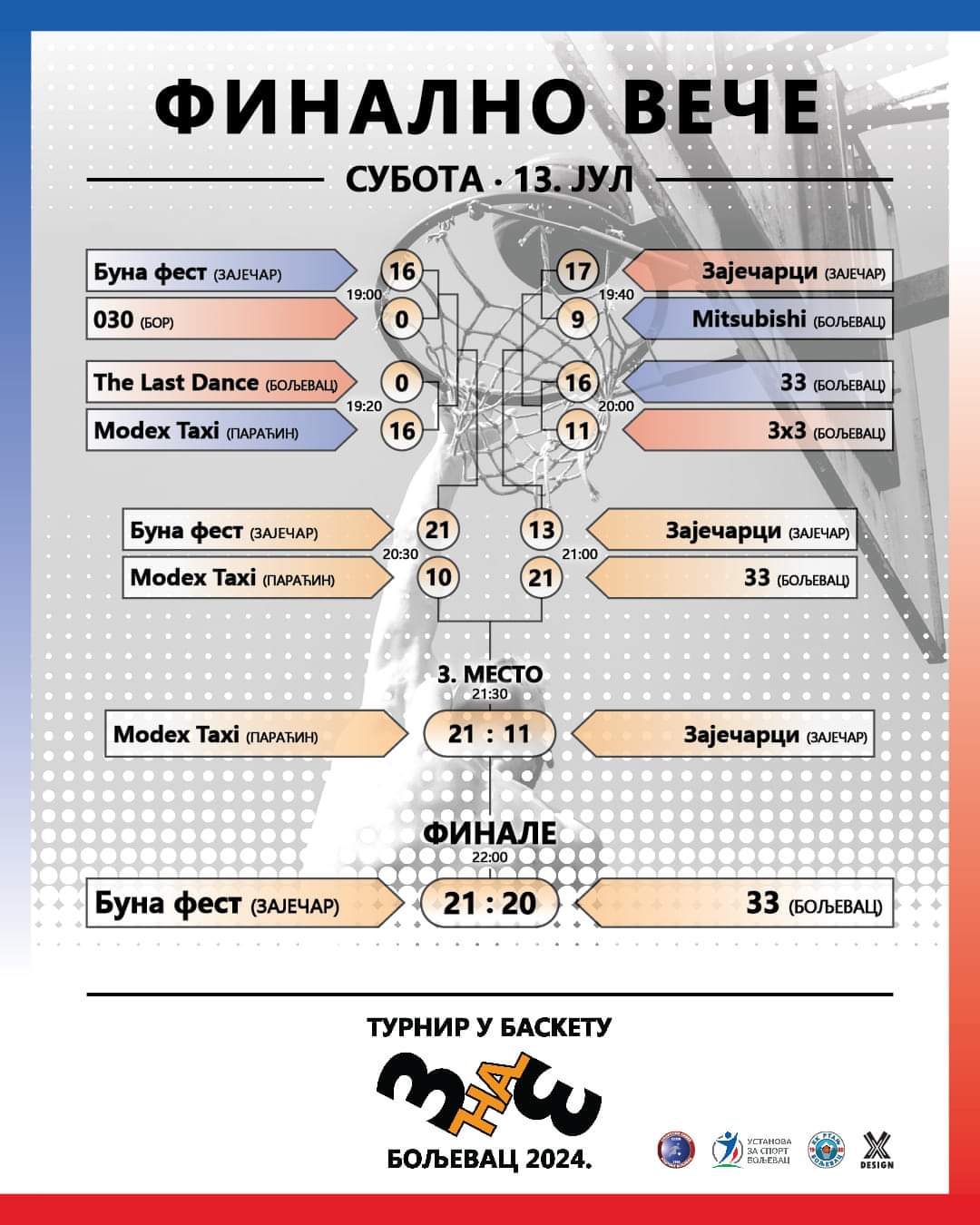 Овогодишње издање баскет турнира окончано је у суботу 13. јула а публика је у два дана програма имала прилику да посматра изузетно занимљиве дуеле екипа из Зајечара, Бора, Параћина и Бољевца. Поред пехара и диплома, учесници су се борили и за пригодне новчане награде.