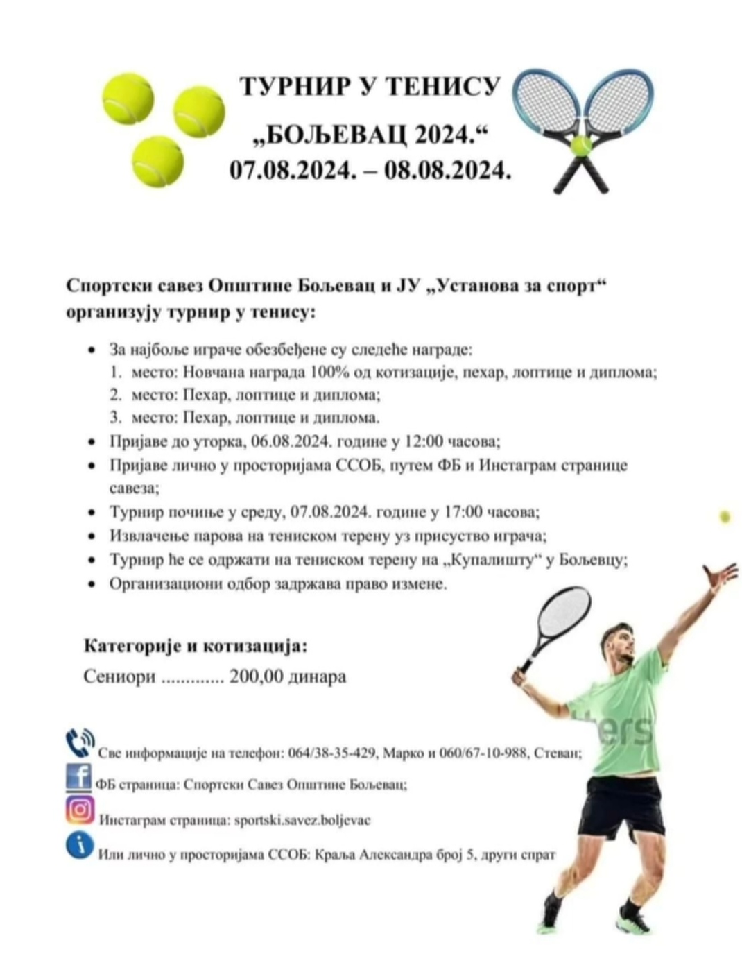 ТРАДИЦИОНАЛНИ ТЕНИСКИ ТУРНИР У БОЉЕВЦУ 7. И 8. АВГУСТА
