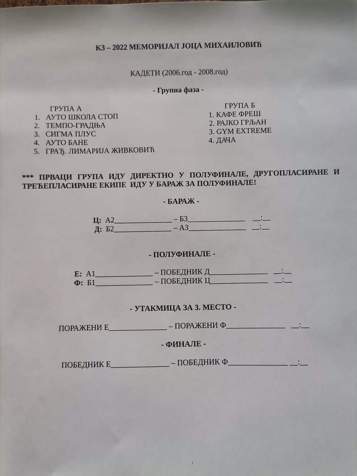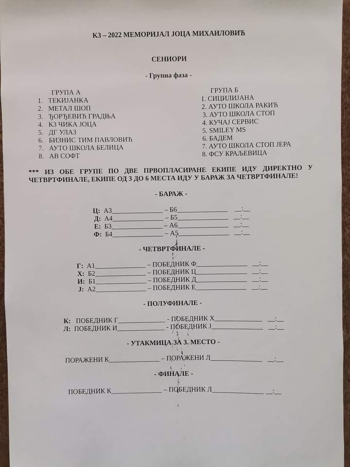 Иако је групна фаза такмичења у пуном јеку, организатори су већ направили и шему распореда утакмица до самог краја турнира за сениоре и кадете, што ће ускоро бити урађено и за остале категорије.