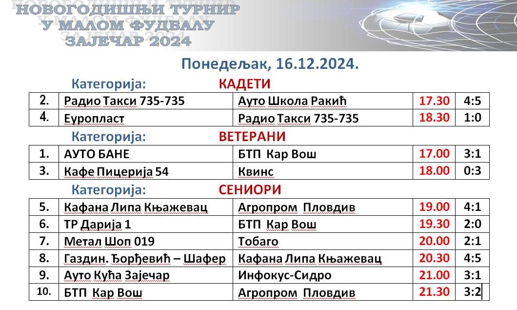 ТРЕЋИ ДАН НОВОГОДИШЊЕГ ТУРНИРА У МАЛОМ ФУДБАЛУ „ЗАЈЕЧАР 2024“
