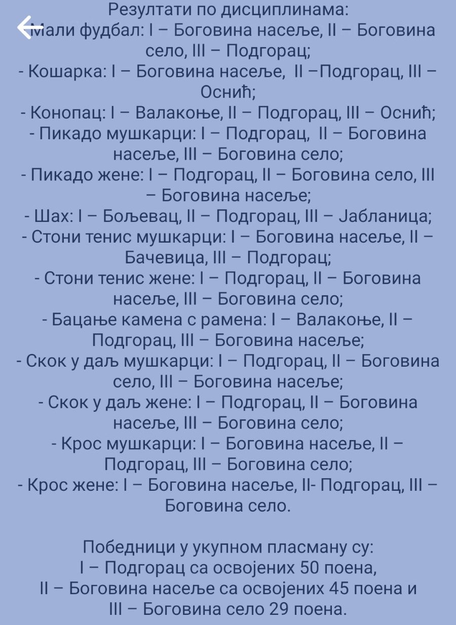 ТРИЈУМФ ПОДГОРЦА НА СЕОСКИМ ОЛИМПИЈСКИМ ИГРАМА У БОЉЕВЦУ