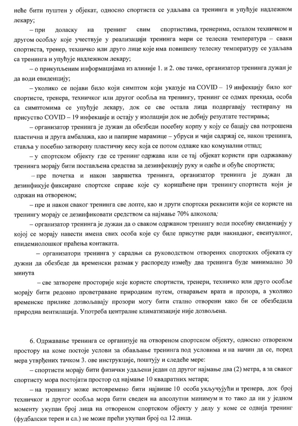 У Инструкцијама се даље наводи да ако се појави било који симптом који указује на ЦОВИД-19, тренинг се одмах прекида, особа са симптомима се упућује лекару, док се сви остали подвргавају тестирању и остају у изолацији док не добију резултате.