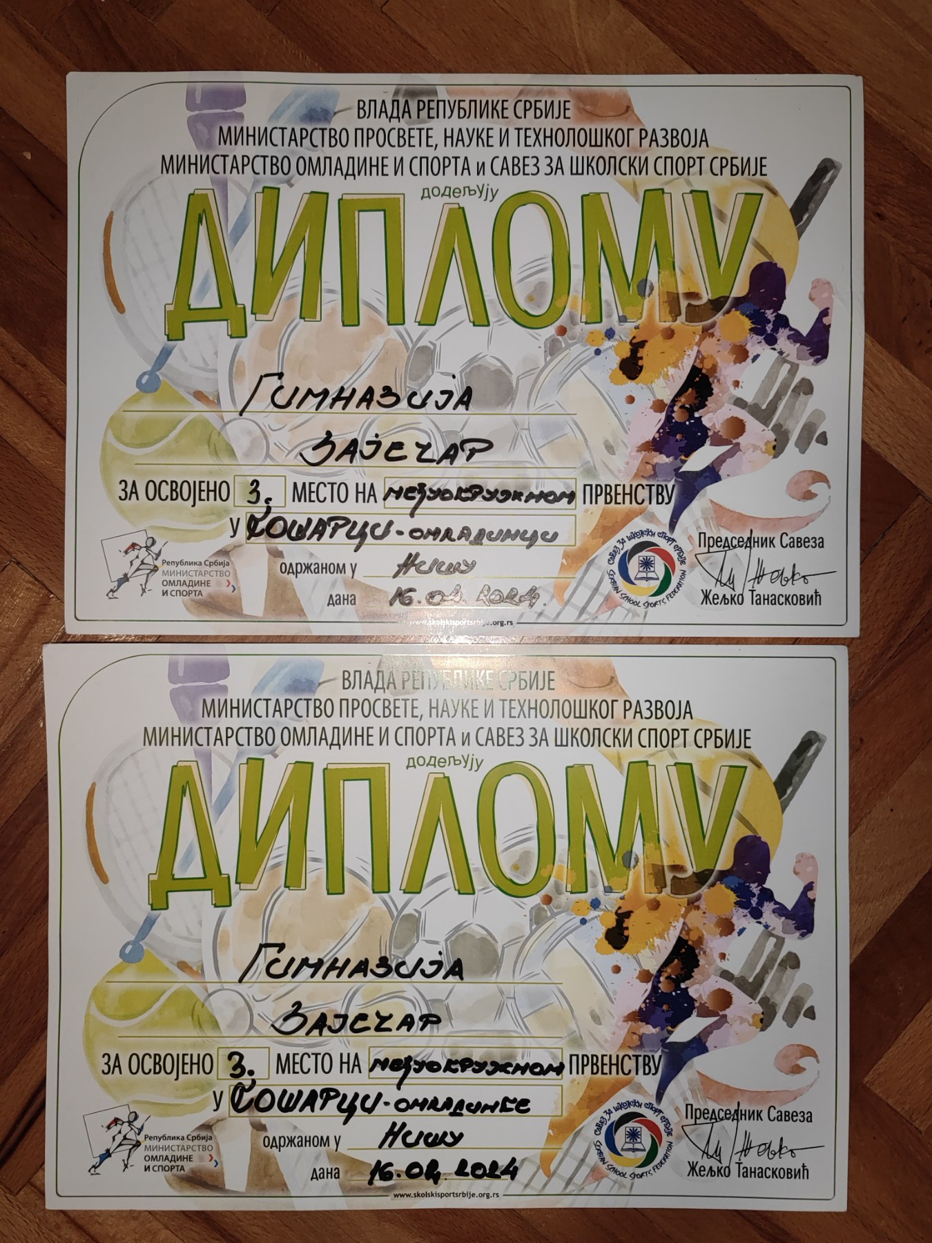 Сезона такмичења је у пуном јеку, а кошаркаши и кошаркашице Гимназије учествовали су на Међуокружном надметању у Нишу. Изабраници Милана Димитријевића и Ане Вукић заузели су 3. места у конкуренцији најбољих средњошколских екипа из Нишког, Расинског и Топличког округа. Зајечарке су поражене у полуфиналу од Варварина, док су гимназијалци на истом степенику заустављени од домаћина из Ниша.