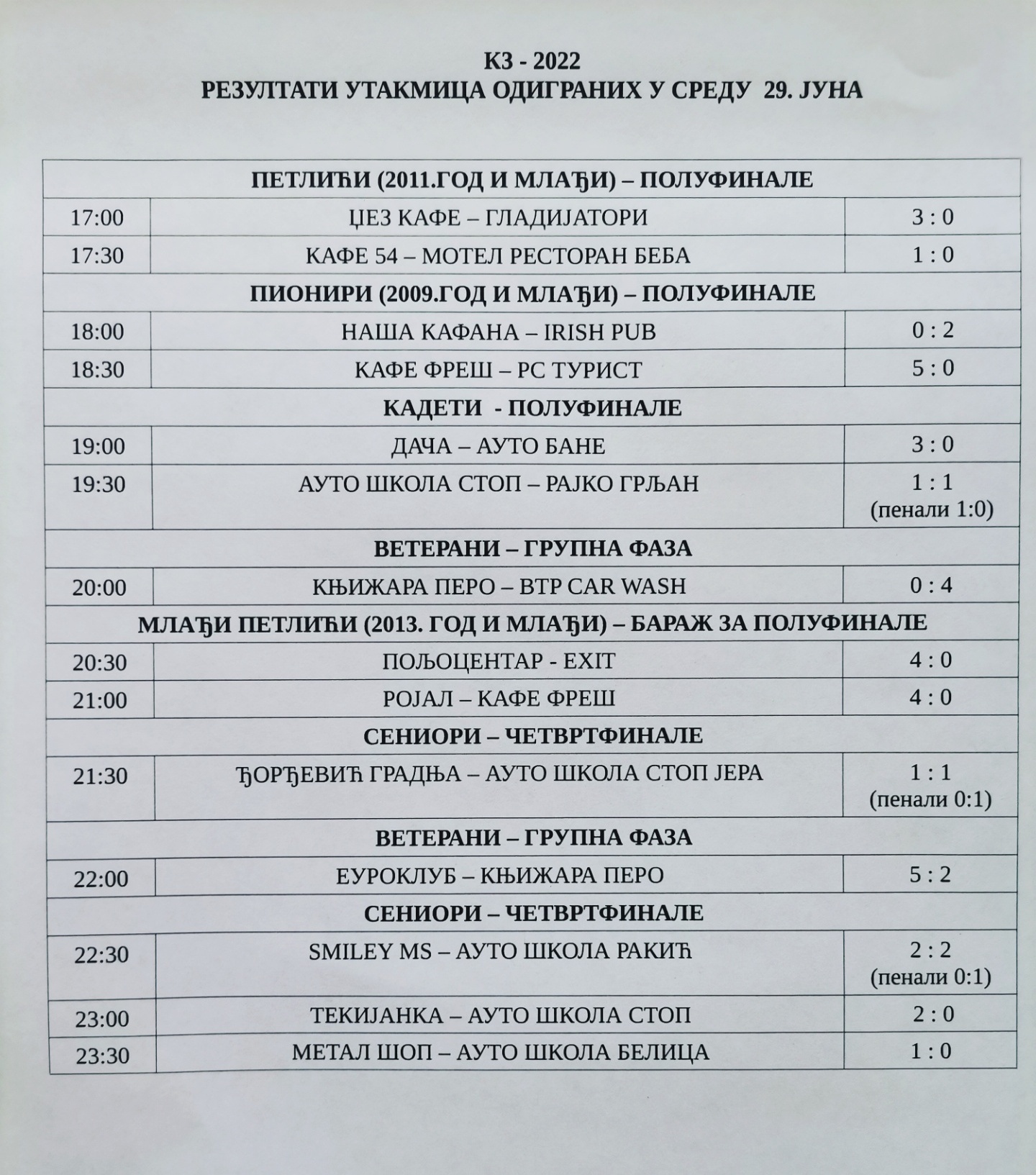 „Глас спорта“ био је као и читавог турнира на лицу места, а забележени су следећи резултати: