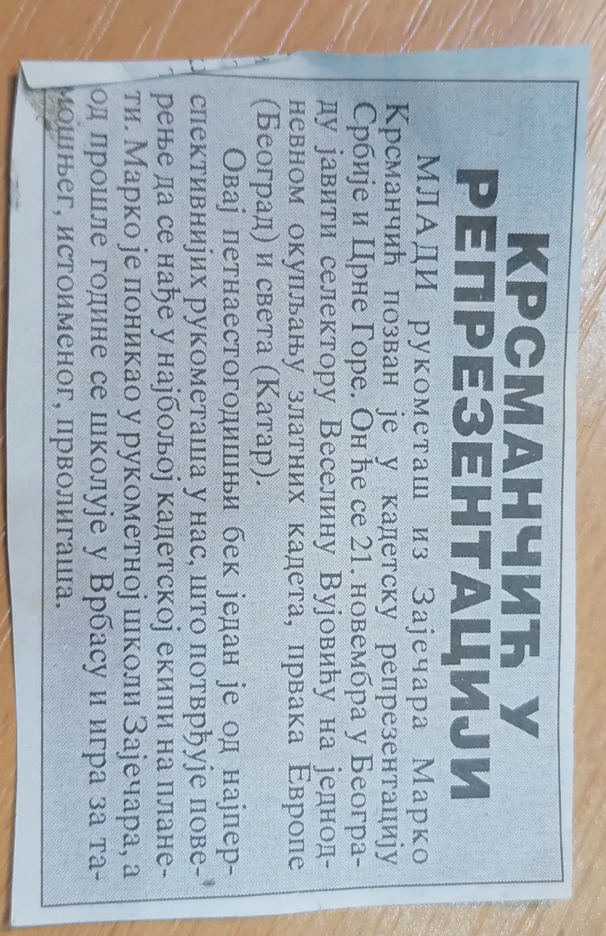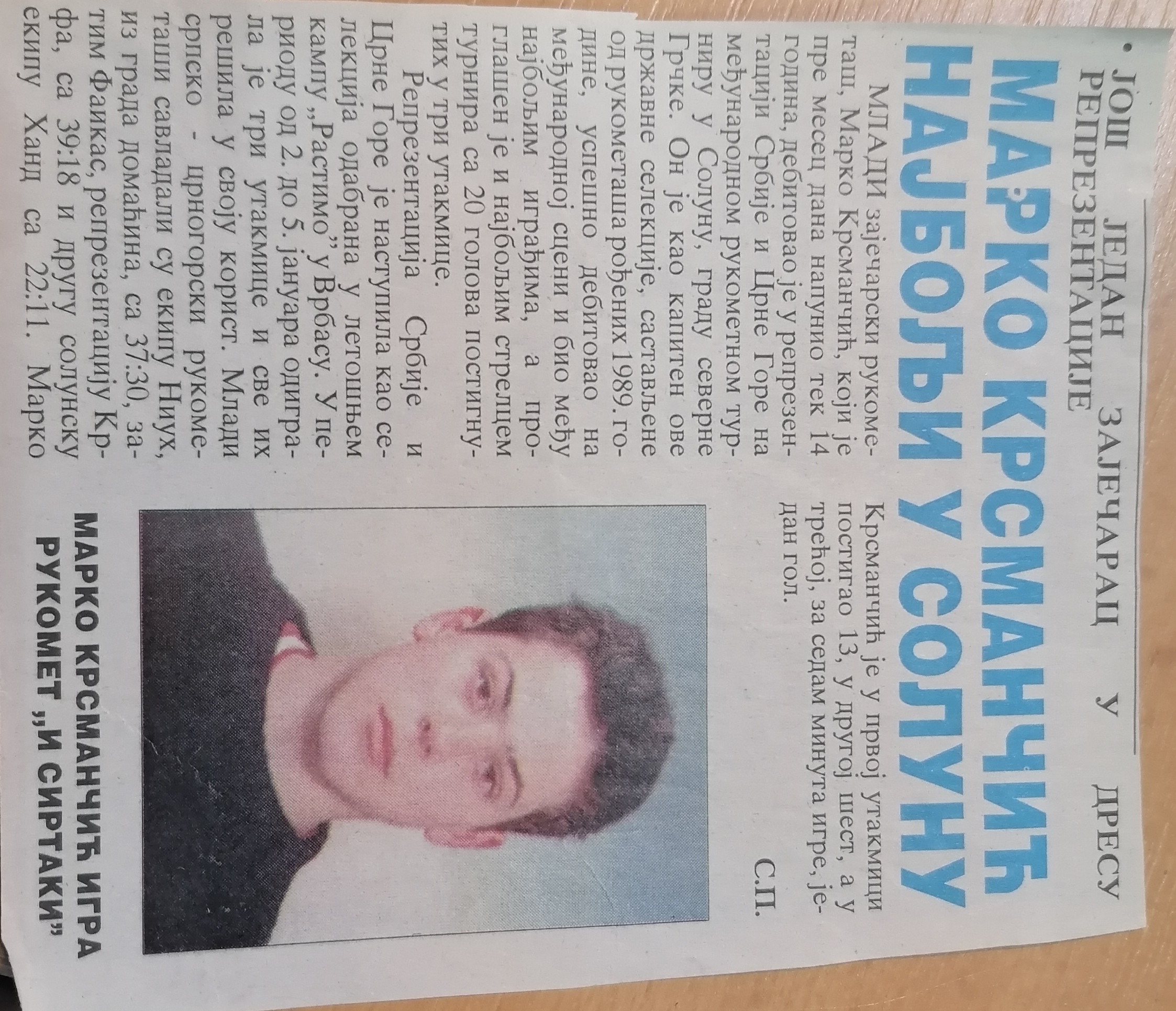 Више него довољно је разлога да Зајечарци прате свој рукометни клуб, који и даље избацује таленте вредне Суперлиге и репрезентације. Један од њих, Марко Крсманчић, иако је пре скоро 20 година отишао трбухом за крухом за својим рукометним сновима, не заборавља свој тим и град, а иако и овог пута није желео да се о томе прича, то су учинили неки други.